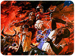 Và khói của sự đau đớn chúng bốc lên đến mãi mãi: và chúng ngày và đêm đều không có nghỉ ngơi,