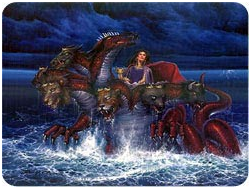 với nhà thờ (người phụ nữ sa ngã) ngồi lên mình và điều khiển nhà nước (con thú).